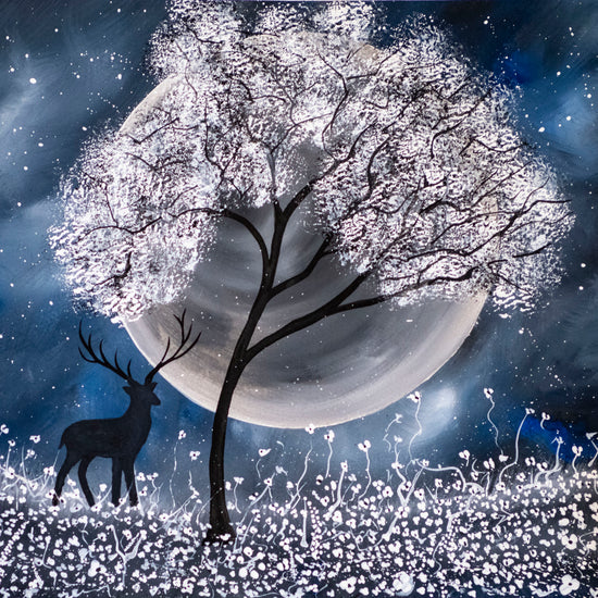 This features an isolated Stag beneath the fading light of the meadow - Check out the video below of Artist Nellie Hearn creating this