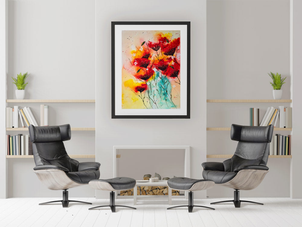 This original artwork captures the graceful motion and delicate vitality of poppies
